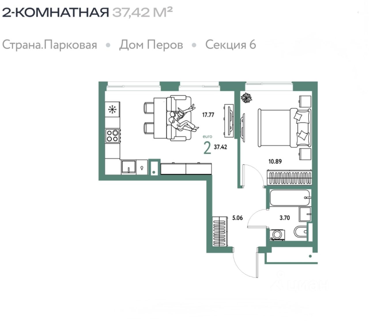 Общая площадь37,42 м²