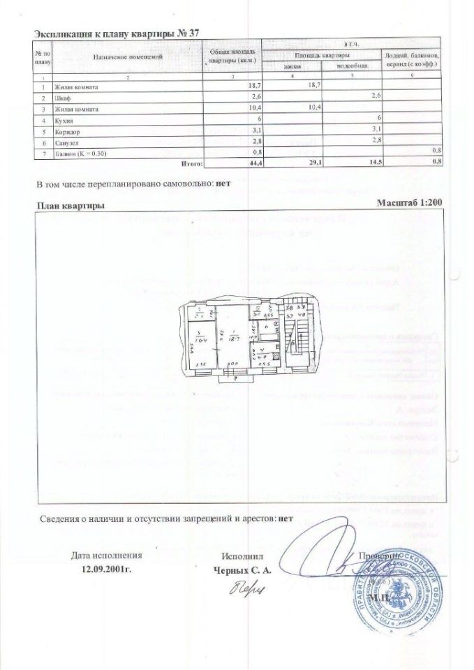 Квартира, площадь 43,6 кв.м., назначение: жилое, адрес (местонахождение): Россия, обл Московская, г Мытищи, ул Щербакова, дом 13, квартира 37, кадастровый (условный) номер: 50:12:0100704:98