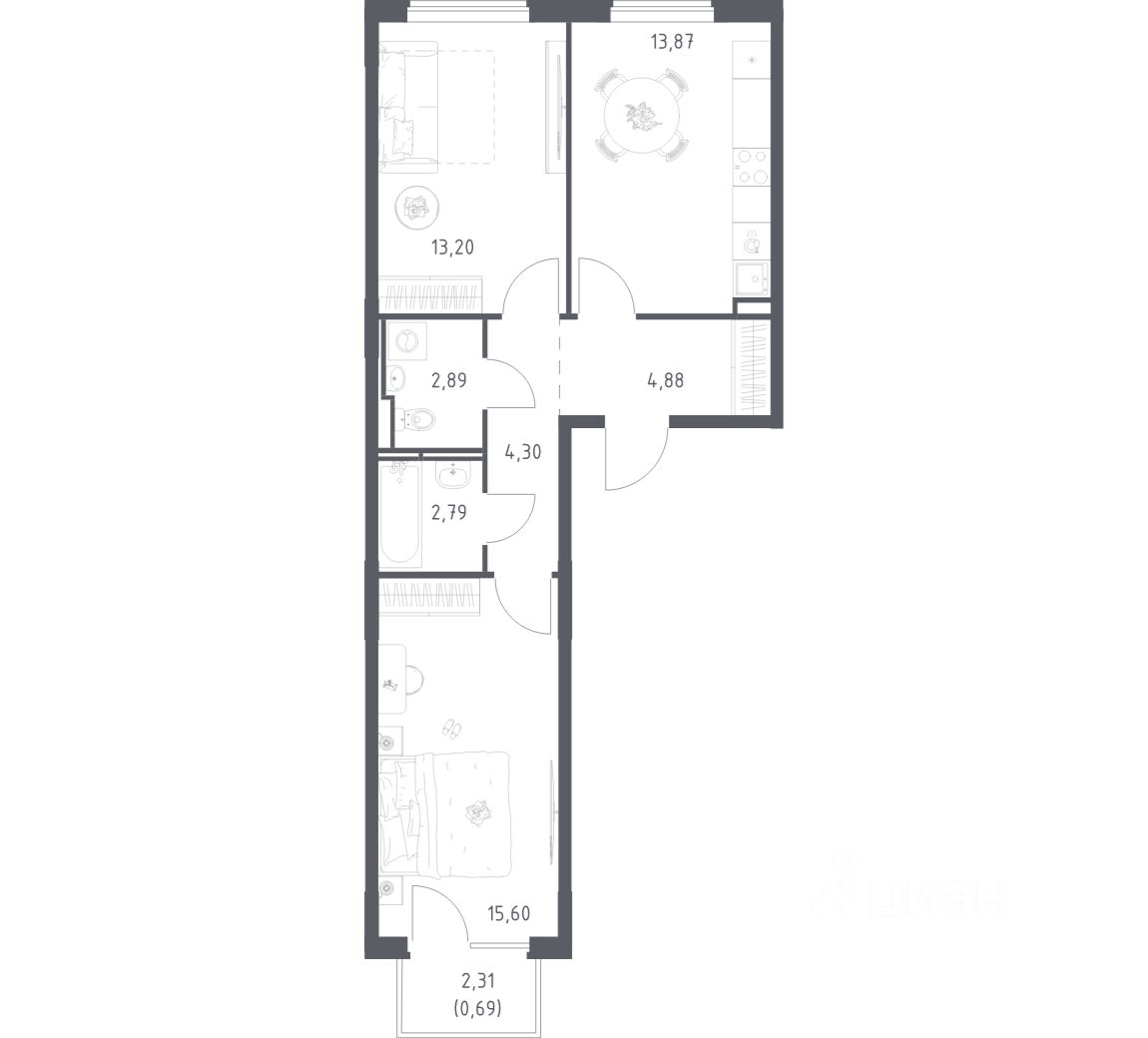 Строим кварталы для жизни с заботой о будущем. Предлагается 2-комнатная квартира комфорт-класса площадью 58,22 кв.м в корпусе 6 на 5-м этаже, в жилом комплексе "Мытищи Парк".