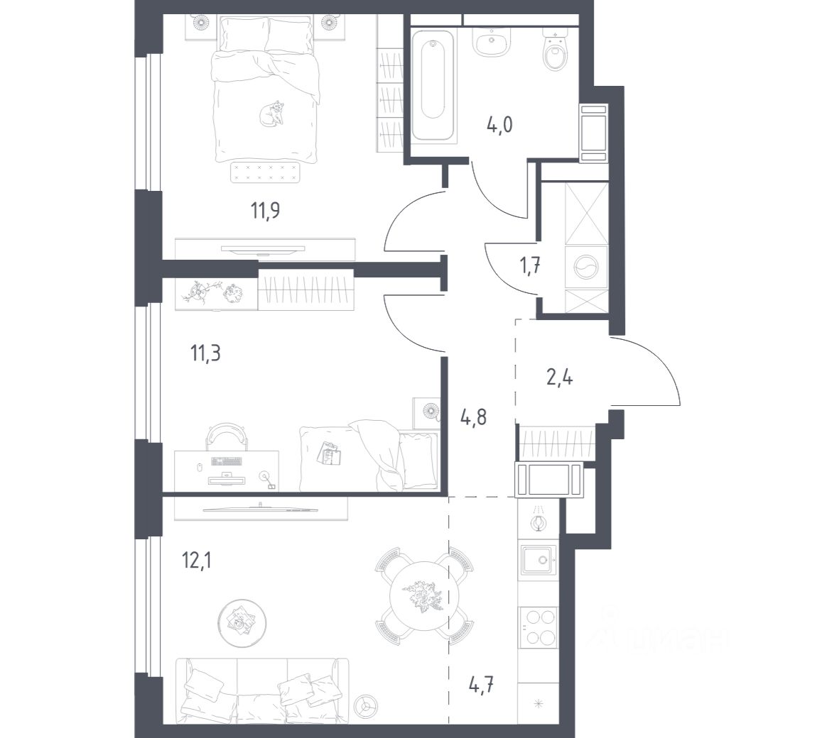 Строим кварталы для жизни с заботой о будущем. Предлагается 2-комнатная квартира комфорт-класса площадью 52,3 кв.м в корпусе 4.2 на 14-м этаже, в жилом комплексе "Мытищи Парк".