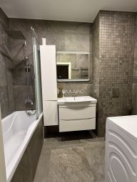 Санузел совмещен 4,4 м² сделана гидроизоляция по всей квартире, в ванной комнате двойная, высота 1,5 метра от пола (полимерная)