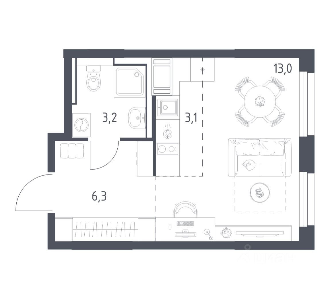 Строим кварталы для жизни с заботой о будущем. Предлагается студия комфорт-класса площадью 25,2 кв.м в корпусе 4.1 на 7-м этаже, в жилом комплексе "Мытищи Парк".