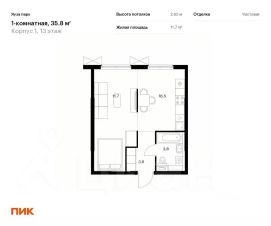 Здесь на общей площади 35,6 м2 разместились: