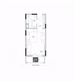 Общая площадь 26 м², потолки 2,8 м ощущение свободы.