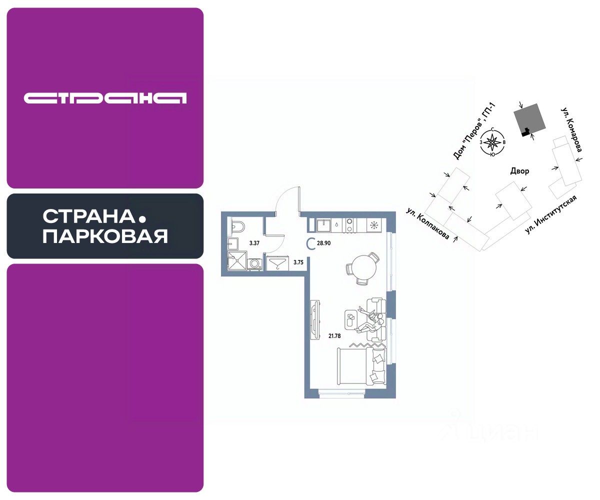 Продается 1комнатная квартира на 17 этаже от застройщика Страна Девелопмент. Площадь квартиры 28.9 кв. м.