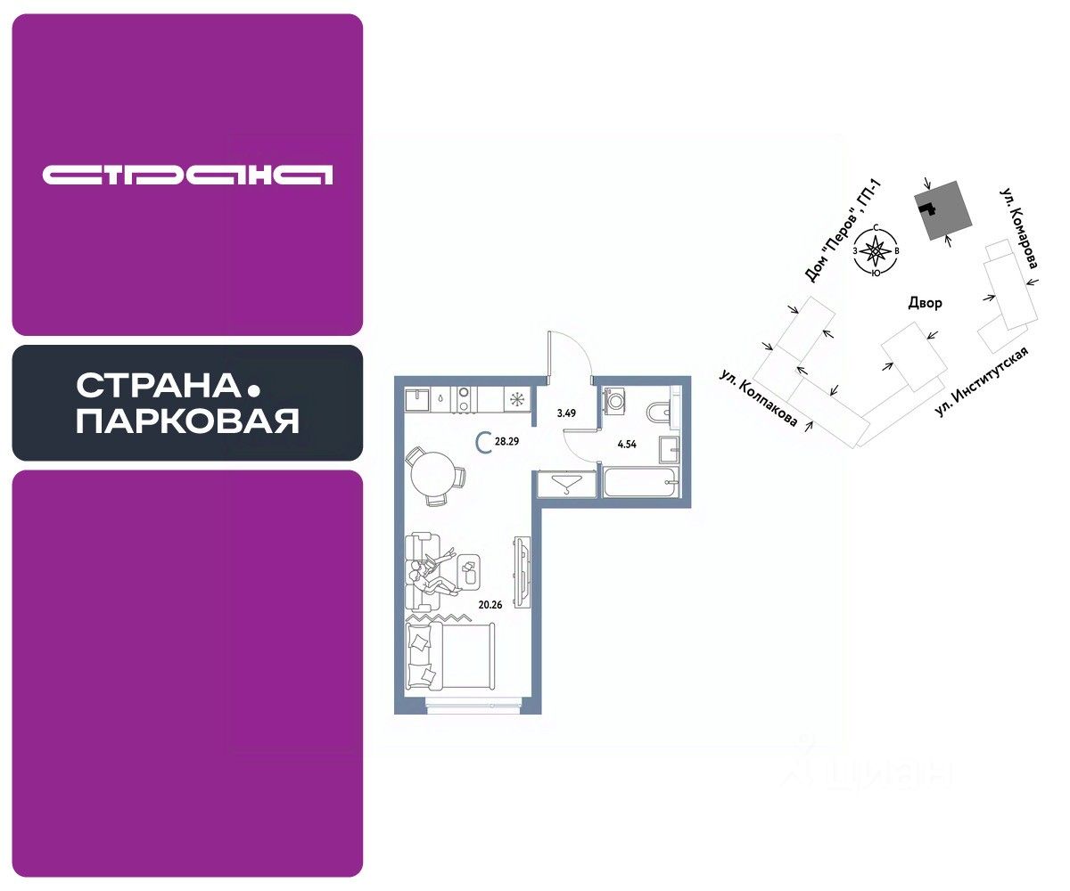 Продается 1комнатная квартира на 19 этаже от застройщика Страна Девелопмент. Площадь квартиры 28.29 кв. м.
