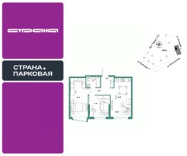 Продается 2комнатная квартира на 4 этаже от застройщика Страна Девелопмент. Площадь квартиры 60.53 кв. м.