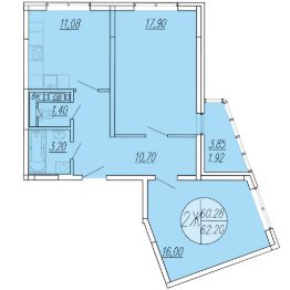 Общая площадь62,2 м²