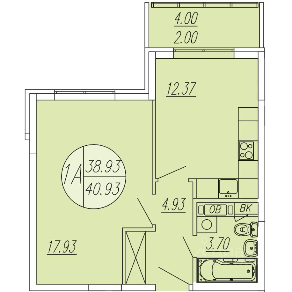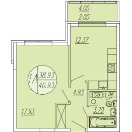 Общая площадь40,93 м²