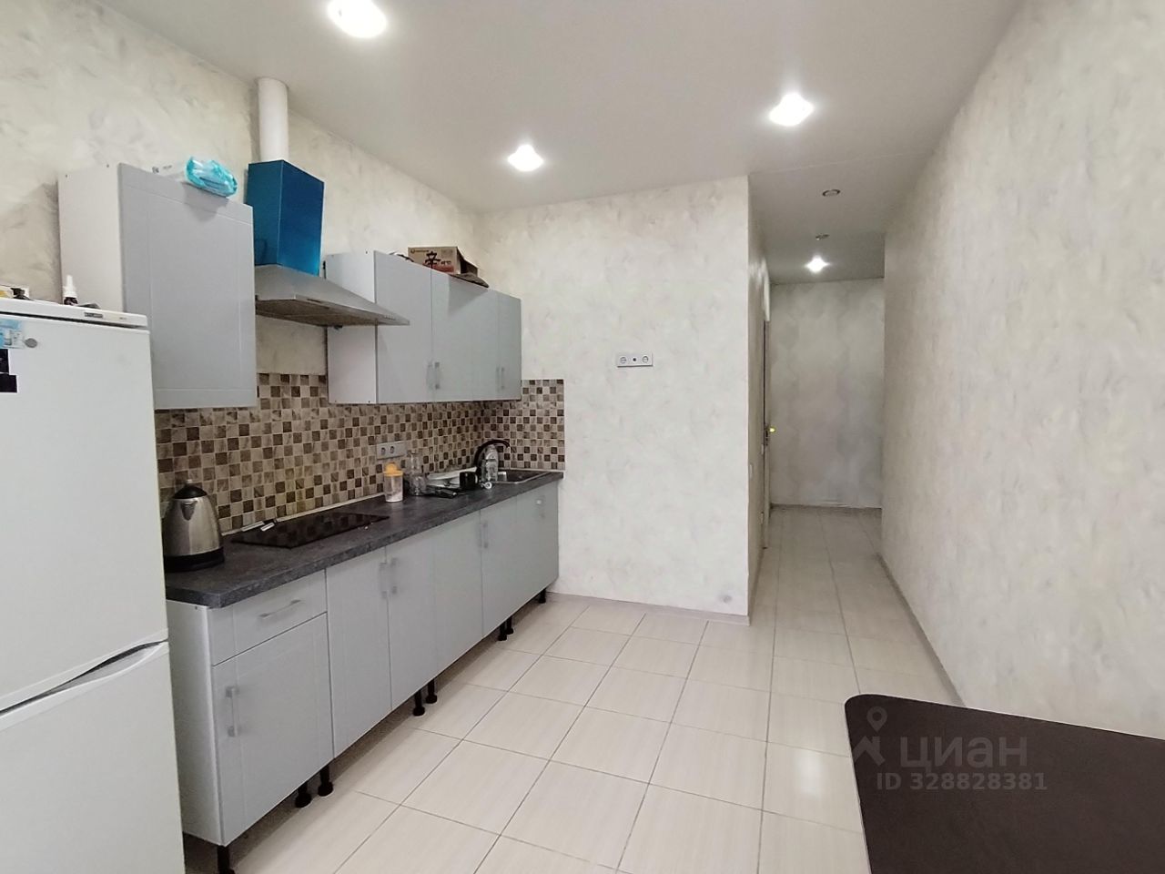 В квартире сделан качественный евроремонт, установлены натяжные потолки. На кухне установлен кухонный гарнитур с встроенной варочной панелью, вытяжка, холодильник. Напольное покрытие- качественная керамическая плитка, покрытие стен-обои.