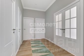 Коридор оснащен встроенной системой хранения вещей (шкаф-купе во всю стену)