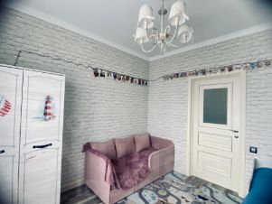 В квартире выполнен дизайнерский ремонт. Все продумано до мелочей для вашего комфорта. Встроенные шкафы из европейских материалов, просторная гардеробная, три кровати. Удобная планировка с двумя балконами позволяет наслаждаться видом на окрестности. Совмещенный санузел оснащен современной сантехникой (Испания, Италия), стиральной машинкой, бойлером на случай отключения горячей воды. Кухня оснащена всем самым необходим (индукционная варочная панель, духовой шкаф, микроволновая печь, холодильник, вытяжка. Вся техника Bosh, стол, стулья, диван). Кухонный гарнитур изготовлен из европейских материалов. В доме есть пассажирский и грузовой лифты, а также пандус для удобства передвижения.