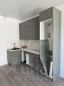 В квартире установлен кухонный гарнитур от застройщика, без техники — удобно для тех, кто хочет сразу обустроить кухню под себя и выбрать технику по своему вкусу.