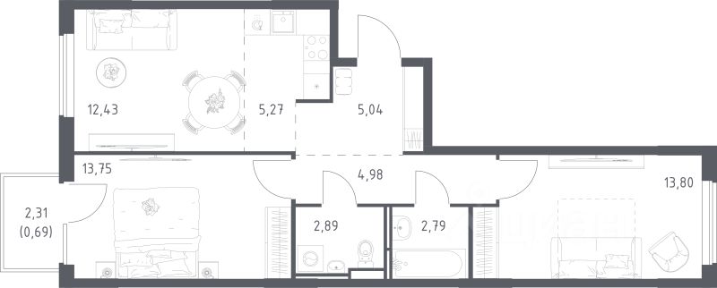 В корпусах предусмотрены кладовые помещения - удобное и современное решения для хранения сезонного спортивного инвентаря и других крупногабаритных вещей.
