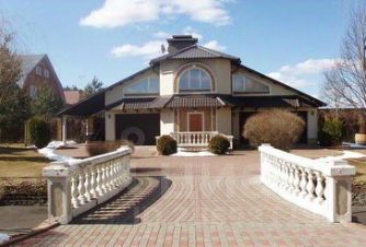 Комплекс в едином стиле по индивидуальному проекту, все три дома выполнены из кирпича, внешне отделаны декоративным камнем, оштукатурены и покрашены в легкий пастельный цвет. Утепленные кровли из металлочерепицы, эксплуатируемые чердаки, большие окна с пластиковыми стеклопакетами, просторные террасы, лоджии. Дом.а продаются без внутренней отделки. Планировка двух жилых домов полностью идентична. Общая площадь дома 454,6 кв.м. На первом этаже расположены гостиная, кухня-столовая, комната отдыха, с/у, бассейн, просторный холл с лестницей на второй этаж. На втором этаже четыре спальни, два с/у, гардероб, большой балкон с красивым видом на окрестности. В цокольном этаже бильярдная, кинотеатр, сауна, несколько кладовых, винный погреб, и подсобное помещение для тех.обслуживания бассейна. Дом.а подготовлены к внутренней отделке по предпочтению будущего владельца. Гостевой дом 172 кв.м: 1 этаж - тамбур, котельная, два гаража и стоянка. На втором этаже гостиная, две спальни, с/у и кухня. Сделан ремонт, дом отапливается, меблирован, необходимая техника установлена. Полностью готов к проживанию.