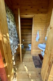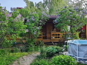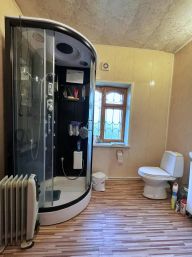 На участке есть баня со своим душем и туалетом и большой кухней - комнатой отдыха с печкой. Можно использовать как гостевой домик.