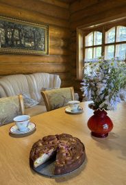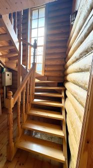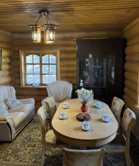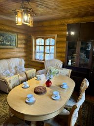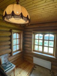 В доме есть все для комфортной жизни большой семьи. На первом этаже: санузел с душевой кабиной и водонагревателем, кухня - столовая, объединенная с гостиной, с печкой и камином, одна спальня. На втором этаже 4 спальни и комната отдыха.