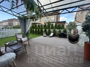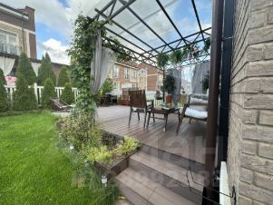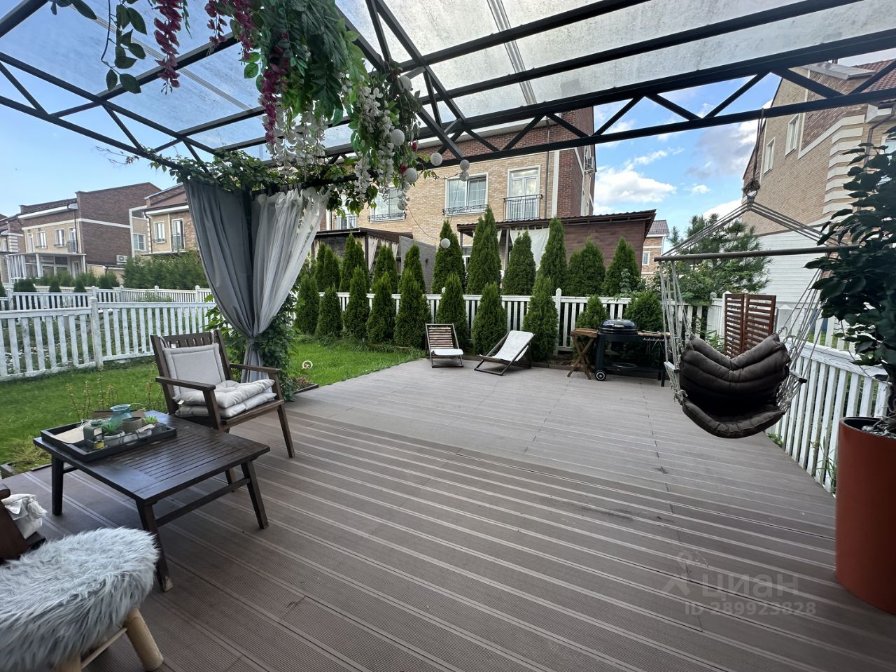 Большая терасса 40.кв.м. с прозрачной крышей из оргстекла. Высажены туи и декоративные кусты вдоль заборов, газон.