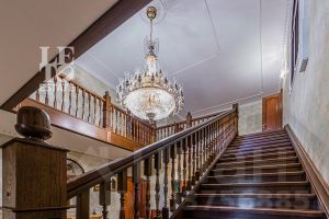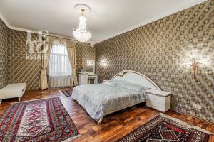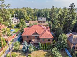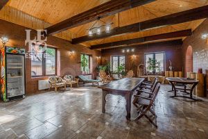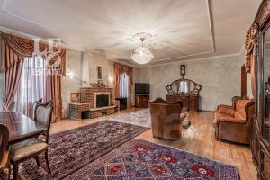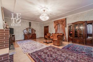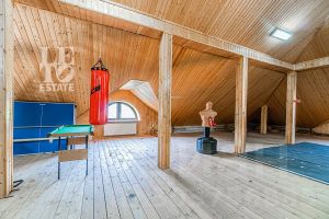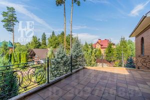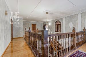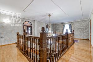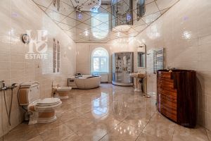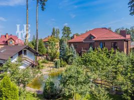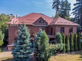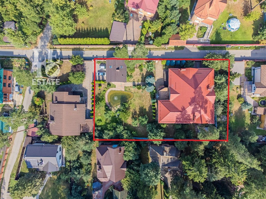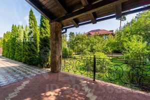 Дом 2013 года постройки, состоит из двух этажей, а также цокольного, полностью меблирован и готов к проживанию, ремонт выполнен из дорогих, высококачественных материалов. Центром притяжения в доме, является большой холл с массивной лестницей из кавказского дуба и вторым светом. Также дом располагает пятью спальнями, зимним садом с зоной барбекю и террасой, зоной СПА с бассейном и сауной, в мансарде расположен спортзал. Дом стоит на монолитно-ленточном фундаменте глубиной 2,4 м. В стоимость входит отдельно стоящее здание с гаражом на первом этаже и квартирой для персонала на втором этаже. Несколько уровней подготовки и очистки воды. Все коммуникации центральные, отопление газовым котлом, мощностью 60 кВт. На участке выполнен ландшафтный дизайн, дорожки вымощены тротуарной плиткой, высажены плодовые, а также хвойные деревья, дубы, кустарники, цветы, виноград. Украшает сад пруд с фонтаном и рыбками. Поселок под круглосуточной охраной. До Пироговского водохранилища 4 км.