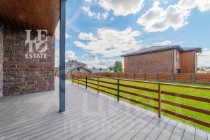 При строительстве использовались материалы высокого качества: фундамент свайно-ростверковый с монолитной плитой (бетон марки М350), плиты перекрытия также монолитные. Стены дома возведены из газобетонных блоков марки Bonolit D500. Крыша выполнена из металлочерепицы Grandline, окна из алюминиевого профиля Alutech, утеплитель кровли - технониколь 250 мм, фасадный утеплитель - технониколь 100 мм.