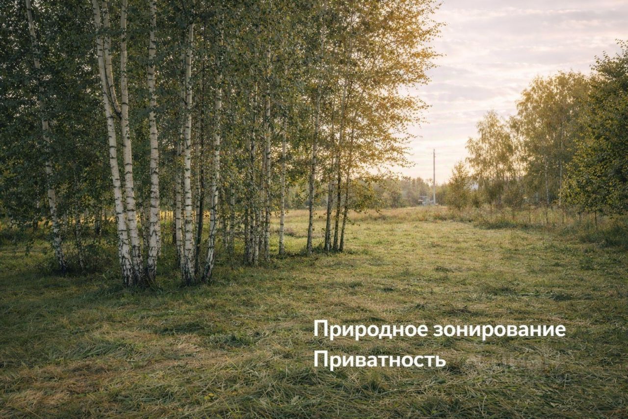 Зелёная полоса берёз формирует естественную приватную зону — дом можно разместить в глубине участка, вдали от дороги.