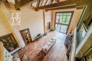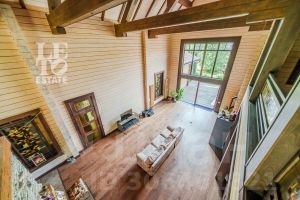 Продаётся дом, созданный с применением тщательно подобранных материалов и технологий. Дом выполнен из клееного бруса, гарантируя надежность и долговечность. Внутренняя отделка включает в себя паркет и итальянскую плитку, а также окна высочайшего качества от Shuko, призванные обеспечить комфорт и стиль. Дом впечатляет массивными дверьми и лестницей, добавляя шика и элегантность интерьеру. Терраса, выполненная из корабельной доски, подчеркивает уникальность дома. Особенностью гостиной являются потолки, достигающие высоты до 9 м, и витражи, наполняющие помещение естественным светом, создавая ощущение пространства и уюта.