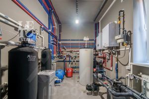 На первом этаже основного дома расположены прихожая, гардеробная, кухня с гостиной и столовой, гостевой санузел и котельная.