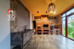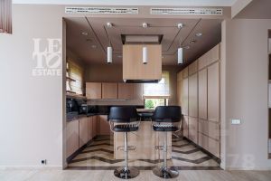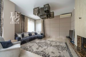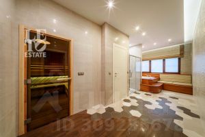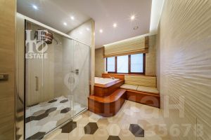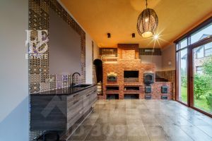 В основном доме удобно сочетаются большие зоны остекления с функциональным зонированием на главные места притяжения: кухня, столовая и гостиная с двухсторонним камином с выходом на террасу. Полы в доме на первом этаже выполнены из керамогранита с проложенным теплым водяным полом. Полы в жилых комнатах и в холлах выполнены из массива дуба и находятся в идеальном состоянии. Вся техника премиальных мировых брендов (Miele, Neff, Bosch) установлена в санузлах и на кухне. Все жилые комнаты оснащены кондиционерами, по дому разведена приточно-вытяжная вентиляция.