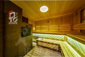 - СПА-зона с парилкой с печью и соляными блоками, увеличенная по размеру джакузи в окружении палубной доски и душевая с обливным ведром;