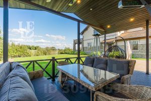Дом полностью построен, внутри сделаны все черновые работы. В некоторых помещениях выполнена и финишная отделка. Установлена система приточно-вытяжной вентиляции. Особенностью данного дома являются большие и объемные светлые помещения, рассчитанные на комфорт своих владельцев и имеющие прекрасные видовые характеристики. Первый и второй этажи изобилуют террасами с видами на декоративное озеро и гольф-поле.