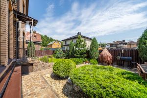 Ухоженная территория порадует своим разнообразием и красотой: здесь расположены мощеные дорожки, цветущие клумбы, ухоженные туи, кустарники и цветы.