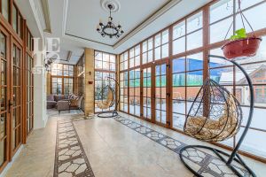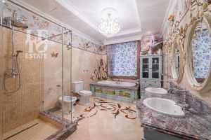 Основная площадь дома составляет 620 кв.м., дополненная баней (380 кв.м.), беседкой (50 кв.м.) и гаражем (168 кв.м.) на живописном участке площадью 24.13 сотки.