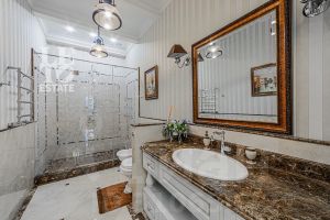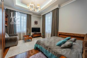 Дом построен с учетом современных стандартов качества: стены толщиной 60 см из блоков и кирпича обеспечивают отличную тепло- и шумоизоляцию. Внутренняя отделка выполнена с особым вниманием к деталям, включая мебель под заказ и использование качественных материалов, таких как орех, индийский камень.