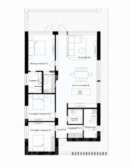 - Планировка: мастер - спальня с собственным санузлом и гардеробной комнатой, 2 гостевые спальни, кухня-гостиная, котельная, гардеробная и гостевой санузел.
