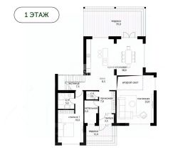 1 этаж — гостиная, кухня-столовая, котельная, санузел, гардеробная, терраса