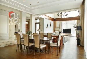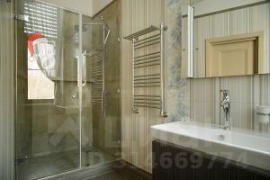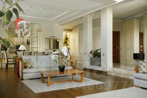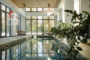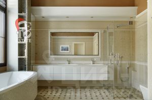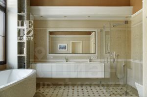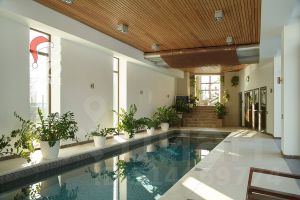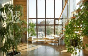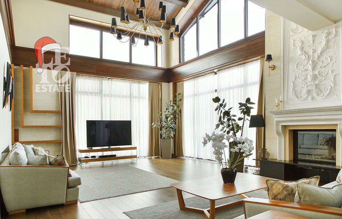 Внутренняя отделка дома перекликается с внешней и выполнена в приятных спокойных тонах. Полы первого этажа отделаны плиткой и паркетной доской. На втором этаже в отделке пола использовалась паркетная доска и натуральный паркет (в мастер-спальне). В доме организована система приточно-вытяжной вентиляции и кондиционирования. Мебель и техника от ведущих мировых брендов. Внутри дома организован собственный спа-комплекс с бассейном, сауной и хамамом.