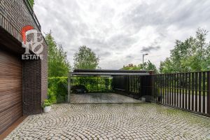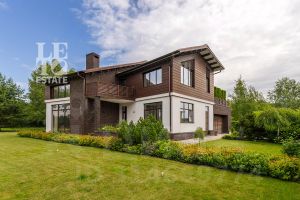 Архитектура дома выдержана в современном стиле с элементами классики. Внешняя отделка дома представляет собой комбинацию из фасадного кирпича, декоративной штукатурки и HPL панелей. Большие окна наполняют внутреннее пространство дома светом и воздухом. Дом построен по индивидуальному проекту с использованием высококачественных дорогостоящих материалов.