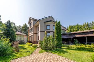 Этот современный жилой дом привлекает взгляды своим фасадом, выполненным в светлых тонах. Он представляя собой трехэтажное здание с уютной мансардой и цокольным этажом.