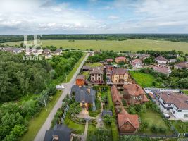 Дом расположен в лесной части поселка, напротив участка - выход в лес, также территория дополнительно огорожена, въезд осуществяется через автоматические ворота, ведется видеонаблюдение. До МКАД всего 12км по Дмитровскому шоссе.