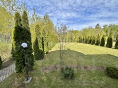 Дом расположен на ровном и полностью огороженном участке ИЖС площадью 11 соток с ландшафтным дизайном, парковкой на 2 машины, зелеными деревьями и кустарниками, рядом с участком - прекрасный парк у пруда и беседка. Въезд на огороженный участок оборудован автоматическими воротами.