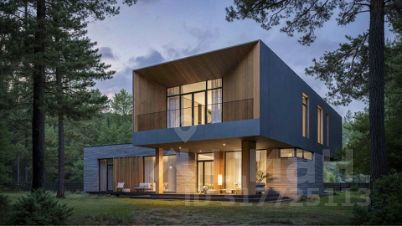 - Материалы: фасады отделаны эластичной штукатуркой и натуральным деревом. Стены из газосиликатного блока с утеплением минеральной плитой 100 мм, надежные железобетонные перекрытия, плоская гибкая кровля, двойные стеклопакеты.