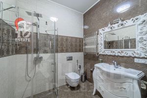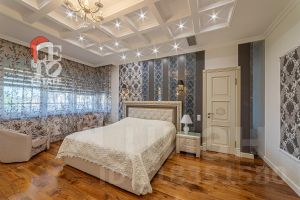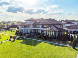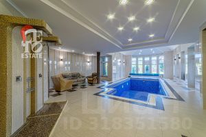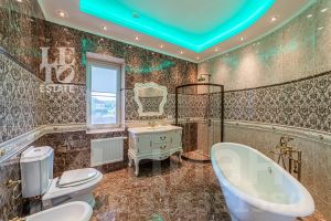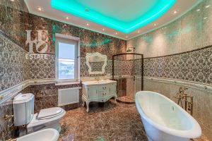 Внутренний интерьер выполнен по авторскому дизайнерскому проекту, с применением современных и дорогостоящих материалов и технологий. Просторные помещения, высокие потолки, большие окна, заполняющие пространство светом и воздухом, дают прекрасную инсоляцию этой загородной резиденции. Натуральные материалы мрамор, камень, дерево умело использованы для создания атмосферы великолепного дома, наполненного жизнью и энергией. В доме 7 спален, 8 санузлов, множество шкафов и гардеробных. Вся мебель и сантехника от лучших производителей Италии и Германии. Премиальная кухня, укомплектована полным набором техники. Центр притяжения дома, - светлая гостиная (со вторым светом, высоким потолком 8 м и панорамными окнами), в которой имеется несколько уютных зон для всех членов семьи.