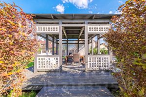 Помимо основного дома, на участке присутствует отдельно стоящий гараж на 2 машиноместа с квартирой для персонала, круглогодичная барбекю зона, зарыбленный пруд с беседкой и зоной отдыха. Ухоженный освещаемый участок с мощеными дорожками, зонами для отдыха, декоративными и плодовыми деревьями, кустарниками.