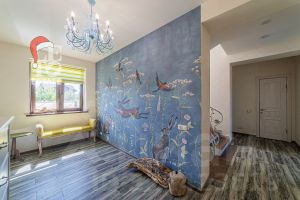 Второй этаж: мастер-спальня с собственной гардеробной и ванной комнатой; три дополнительные спальни; два санузла; мансарда, где обустроен домашний кинотеатр, кладовая и мастерская (есть возможность сделать ещё один санузел).