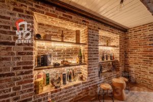 Цокольный этаж: котельная, кладовая, спортивный зал, винный погреб, постирочная, сауна, комната отдыха с купелью и санузел.