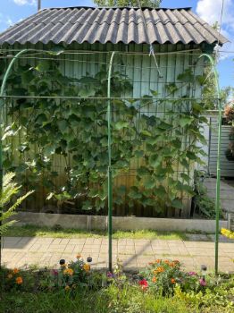Растет на участке: ель, туи, розы, яблоня, красная/черная смородина/черешня/вишня/жимолость/клубника/малина /груша/рябина/виноград/кабачки/огруцы/морковь/све к ла/лук/чеснок/