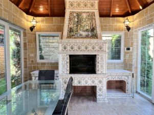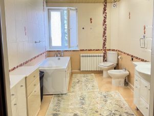 Дом подключен к централизованным системам газоснабжения, электроснабжения, канализации, вокруг дома организована дренажная система. Водоснабжение организовано в виде скважины с многоступенчатой системой очистки. В доме установлены системы кондиционирования TOSHIBA. Дом продается частично меблированный.