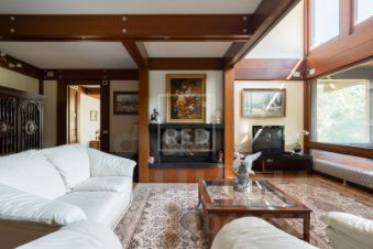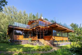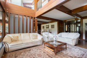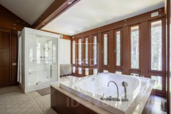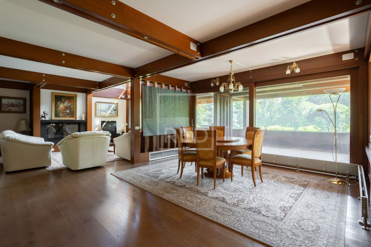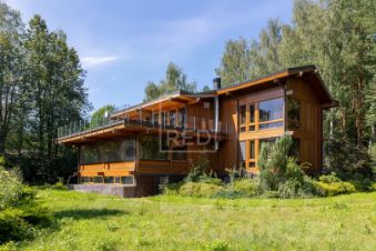 Конструктивные решения: дом стоит сплошной фундаментной ж/б плите, монолитные несущие ж/б стены, каркас выполнен из лиственницы, шпонированной красным деревом. Панорамное остекленение - трехслойные стеклопакеты в деревянных переплетах. Высокие разноуровневые потолки, приточно-вытяжная система, премиальная бытовая техника и инженерия. .