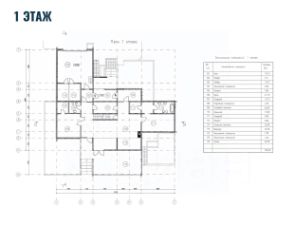 1 этаж: кухня (21 м.кв.) с кладовой, гостиная с камином (80 м.кв.), мастер -спальня (27 м.кв.) со своим с/у и гардеробной, гостевой с/у, гардеробная, просторные холлы, выход на веранду (53 м.кв.), выход на паркинг на 2 авто (46 м.кв.).