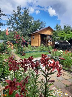 Так-же имеется БАНЯ. Размер 44 брусовой , с утеплителеми хорошей обработкой.Обшивка парной и комната отдыха -вогонка осина. Подведено летняя водоснабжение .Крыльцо кованное, за баней дравница. Навес- на 2 машины , крыша профлист, столбы метал.